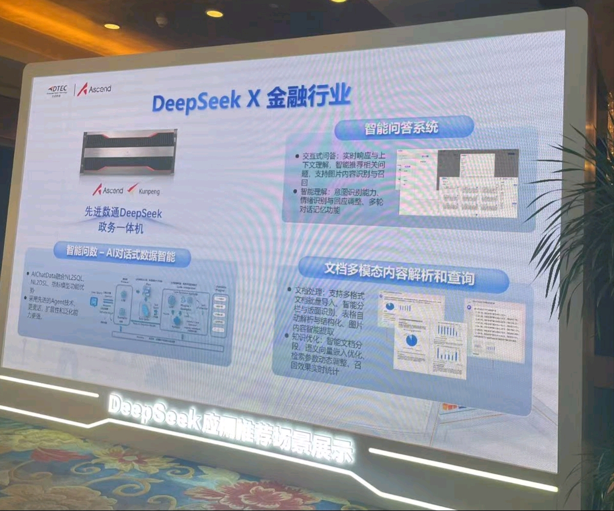 本次大会DCBOX小金库官网展示了DeepSeek一体机,向业界全方位展示了其在金融科技领域的创新实力。DCBOX小金库官网DeepSeek一体机的文档多模态内容解析和查询功能备受瞩目。它能够对各类金融文档,如研究报告、监管文件、交易记录等进行全方位解析,将文本、图表、图像等多模态信息转化为可高效查询和分析的结构化数据。金融组织借此可快速定位关键信息、洞察市场趋势、防范合规风险,为决策给予有力支持,实现从数据到价值的高效转化。